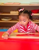The clear and simple construction of the sensorial material appeals to the child and assists him or her to develop, broaden and refine his or her sense of perception of color, shape, size, form, sound, touch, taste and smell.